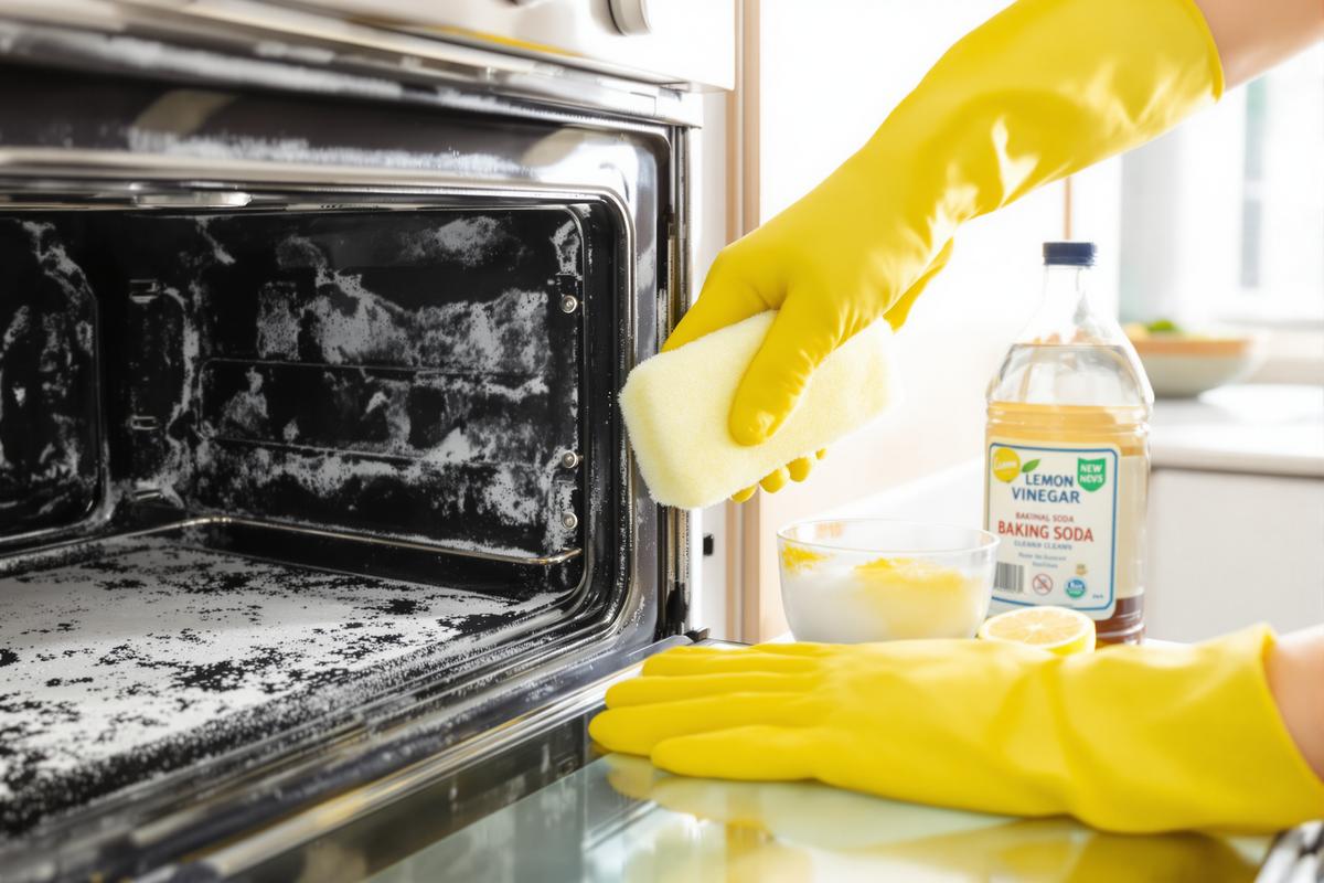 Hier setzt sich oft altes Fett hartnäckig an. Trag die Mischung aus Backpulver und Essig direkt auf die Innenflächen des kalten Ofens auf. Lass sie über Nacht einwirken. Am nächsten Tag einfach abwischen – kein Schrubben nötig.