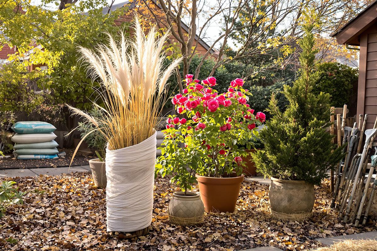 - Kübelpflanzen mit Vlies, Jute oder Kokosmatte umwickeln