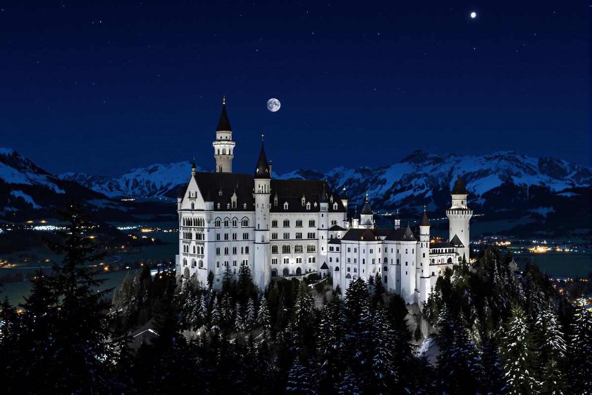 Tagsüber strömen Tausende von Touristen zum Schloss Neuschwanstein in Bayern. Es thront spektakulär auf einem Felsen, umgeben von Bergen und Wäldern. Doch in der Nacht? Da verändert sich die Stimmung dramatisch. Der Trubel verschwindet. Was bleibt, ist Stille, Dunkelheit und ein Hauch von Magie.